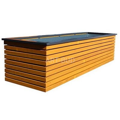 Niezwykle efektowna i popularna obecnie donica drewniana na stalowej konstrukcji. Wymiary donicy predysponują ją do wszelkich zastosowań, zarówno na prywatnych posesjach jak i na obszarach miejskich. Konstrukcja metalowa jest standardowo malowana na kolor czarny.