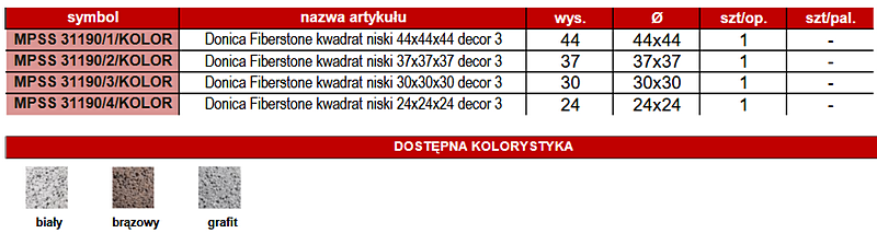 | Indeks: MPSS31190/1/D3BR WYMIARY: (dł. x dł. x h) -44x44x44 cm -37x37x37 cm -30x30x30 cm -24x24x24 cm |