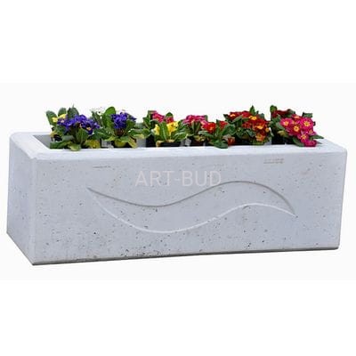 Nowoczesna donica betonowa wykonana jest z betonu architektonicznego o fakturze przypominającej naturalny, matowy marmur. Donica posiada wytłoczenia w kształcie fali z każdej strony. Donica posiada otwór odpływowy na dnie. Gładka powierzchnia betonu architektonicznego doskonale komponuje się z betonowa zabudową przestrzeni zurbanizowanych, a zwłaszcza utwardzonych placów i ciągów pieszych. Duża waga donicy powoduje, że trudno ją przesunąć i nie ma potrzeby przykręcania do podłoża.