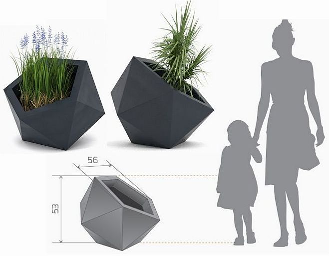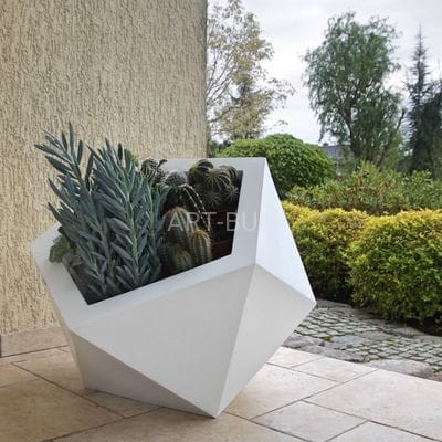 Donica DIONE, to donica o średniej wielkości, której forma przypomina nieregularny kryształ. Jej awangardowa forma i jednostronne pochylenie sprawiają wrażenie przedmiotu "kosmicznego" w której rośliny, zwłaszcza nisko rosnące, wyglądają zupełnie niecodziennie. Jest to produkt z najwyższej jakości twardego PE (polietylen) odpornego na warunki atmosferyczne i termiczne. Donica DIONE jest oferowana w 10 kolorach. Donice są trwałe i odporne, ich faktura do złudzenia przypomina naturalną ceramikę, przewyższając ją zdecydowanie odpornością na urazy mechaniczne, łatwiejszym transportem i ekonomią. Ten wyrafinowany produkt jest od początku do końca polski, zaprojektowany przez wysokiej klasy architektów wnętrz i cieszy się coraz większą popularnością. Donice w wersjach z pojedynczym dnem.