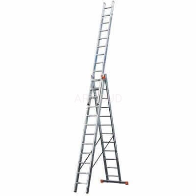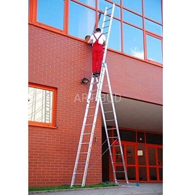 Niezwykle praktyczne urządzenie do wszelkich prac na wysokościach wewnątrz i na zewnątrz budynków. Zaprojektowane tak, aby przy minimalnej wadze, gabarytach, ciężarze własnym i możliwościach logistycznych, zapewnić maksymalną funkcjonalność w konkurencyjnej cenie. Trzy elementowa aluminiowa drabina wielofunkcyjna, do użytku jako drabina przystawna, rozsuwana i wolnostojąca z wysuwanym elementem.