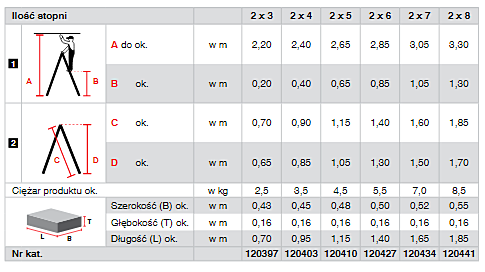 Przedstawiona cena dotyczy drabiny 2 x 3 stopnie