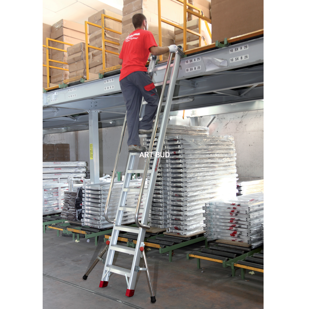 Drabina przystawna z szerokimi stopniami i stabilizatorem S10/S14Sella Faraone