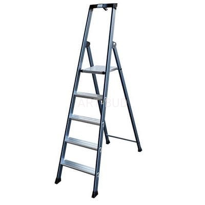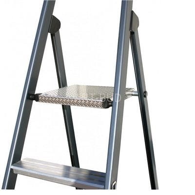 Najwyższej jakości anodowana drabina składana do użytku w pomieszczeniach mieszkalnych, biurowych i magazynowych. Wygodne stopnie górna profilowana poręcz-półka mogąca służyć jako poręcz i podparcie, czynią z tej drabiny urządzenie nie tylko wyjątkowo eleganckie ale przyjazne i ergonomiczne.