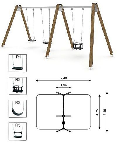 • dostępne rodzaje siedzisk w huśtawce: w cenie podstawowej R1 -płaskie, pozostałe rodzaje opcjonalne to: R2- koszykowe, R3- płaskie typu pas, R5- płaskie z oparciem;