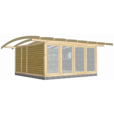 Drewniany, całoroczny domek letniskowy z dachem łukowym Saint Tropez będzie doskonały zarówno jako domek rekreacyjny przy domu jednorodzinnym oraz jako punkt biznesowy. Mniejsza od 35 m2 powierzchnia zabudowy domku pozwala na budowę bez pozwoleń.