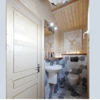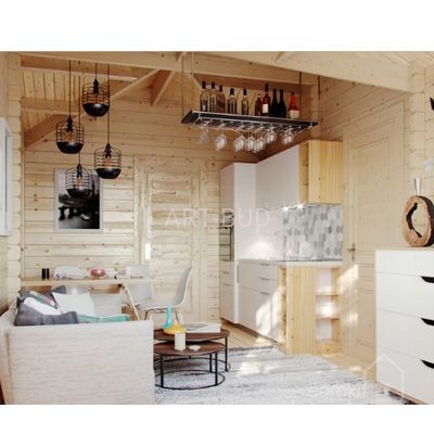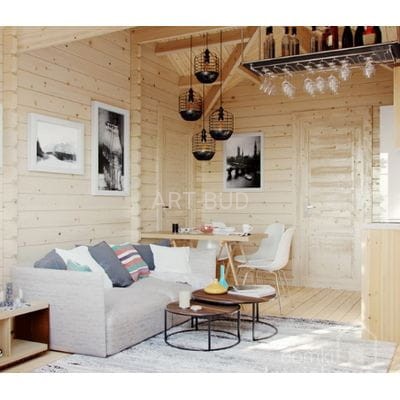 | Wymiar z el. wystającymi: 860 x 560 mm Wymiar bez el. wystających: 840 x 540 mm Grubość ściany: 44 mm Wysokość ściany: 233 cm Wysokość w szczycie: 318 cm Powierzchnia zabudowy: 34,8 m2 Powierzchnia dachu: ~45,7 m2 Kąt nachylenia dachu: 26o Wypust dachu: 300 mm Grubość deski dachowej: 19 mm Grubosć deski podłogowej: 28 mm Wymiar belki podwalinowej: 44 x 90 mm Ilość drzwi: 1x 1600x1965 mm, 3x 800x1940 mm Ilość podw. okien uch. rozw.: 3x 1625x1060 mm, 1x 670x700 mm |