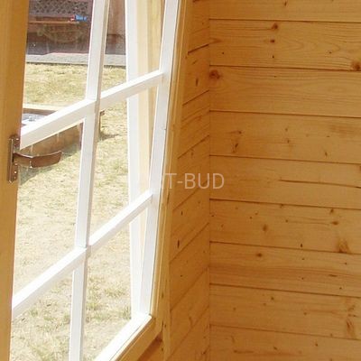 Magda II to domek ogrodowy z balika sosnowego z bardzo jasnym wnętrzem, na co wpływ ma mocno przeszklony front z dwuskrzydłowymi drzwiami wejściowymi. Domek klasyczny w formie z bardzo efektownym wejściem, wysuniętym przed elewację i przekrytym dwuspadowym dachem z szerokim okapem. Ten dosyć duży, 35 metrowy domek w wersji wykończonej z kuchnią i łazienką, może służyć jako komfortowe, samowystarczalne miejsce do zamieszkania i wypoczynku. Drewniany domek letniskowy Magda II bardzo dobrze się wpasuje w każdą działkę rekreacyjną, a podzielone na cztery pomieszczenia wnętrze zapewni wypoczynek nawet sześciu osobom. Magda II jest zmienioną wersją modelu Magda I, domek został powiększony w taki sposób, żeby jego powierzchnia zabudowy była jak najbardziej zbliżona do 35 metrów kwadratowych. Domek można wybudować na zgłoszenie, bez pozwolenia budowlanego. Przy wymiarach zewnętrznych z wypustami 860x560 cm domek ma dokładnie 34,8 metra kwadratowego powierzchni zabudowy, bez wypustów domek mierzy 840x540 cm. W pełni odeskowany świerkową podbitką o grubości 19 mm dach ma około 46 metrów kwadratowych powierzchni, 30 centymetrowy okap oraz nachylenie równe 26 stopniom. Wykonane z grubego na 44 milimetry litego świerkowego, czterostronnie struganego balika ściany sprawiają, że konstrukcja jest niezwykle sztywna i stabilna. Baliki są łączone między sobą na podwójne pióro-wpust. Domek w wersji standardowej posiada podłogę wykonaną z deski świerkowej o grubości 28 milimetrów.