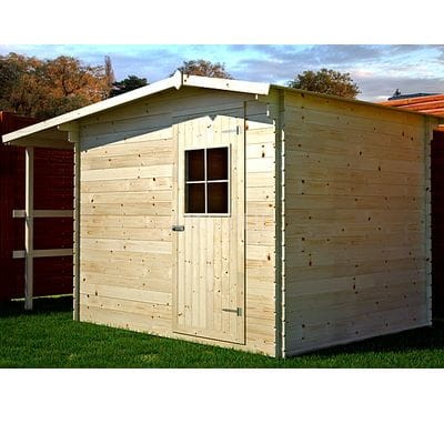 Drewniany domek ogrodowy Aster z wiatką na drewno - drewutnią