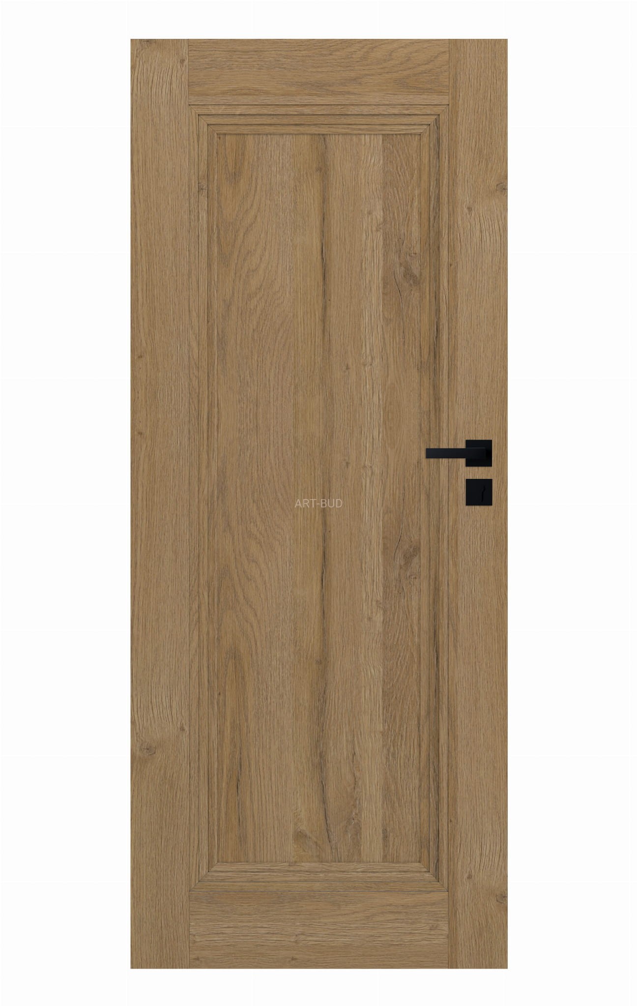 Proponowany model to skrzydło drzwiowe wykonane jest z ramiaków MDF uszlachetnionych okleiną drewnopodobną o zwiększonej odporności na zarysowania.