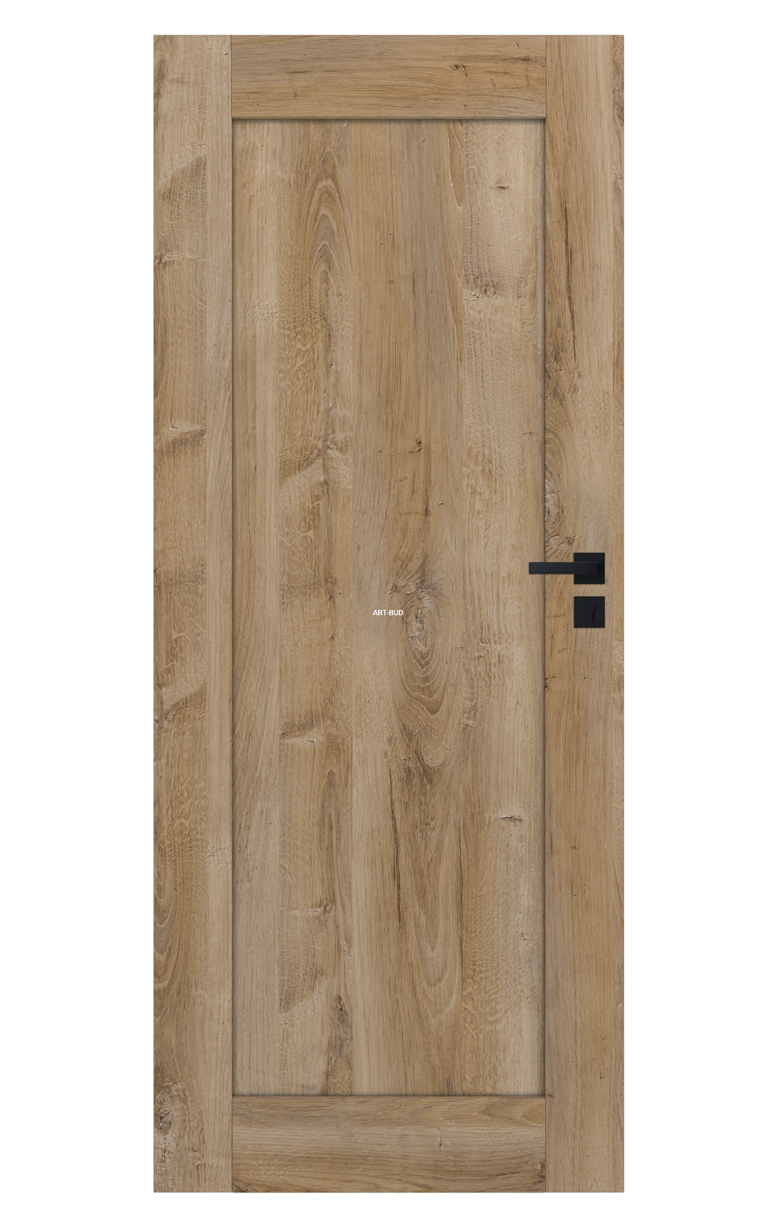 Proponowany model to skrzydło drzwiowe wykonane jest z ramiaków MDF uszlachetnionych okleiną drewnopodobną o zwiększonej odporności na zarysowania.