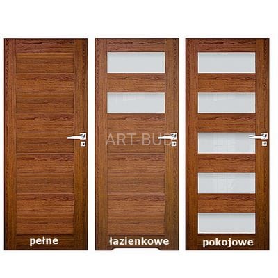 Proponowany model to skrzydło drzwiowe wykonane jest z ramiaków MDF uszlachetnionych okleiną drewnopodobną o zwiększonej odporności na zarysowania.