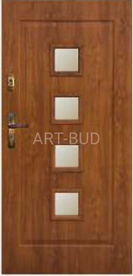 Skrzydło o grubość 54 mm, wykonane z blachy stalowej ocynkowanej gr. 0,6mm pokryte wytłaczanym laminatem drewnopodobnym składającym się z folii spodniej wykonanej z półtwardego poli(chlorku winylu) oraz powłoki z matowego akrylanu odpornym na warunki atmosferyczne w szczególności na promieniowanie UV (gwarancja producenta 9 lat). Przeszklenia są wykonane z „pakietu” szyb zespolonych hartowanych zapewniających bezpieczeństwo użytkowników w czasie uszkodzenia. Ramki przyszybowe wykonane z najwyższej klasy poli(chlorku winylu) pokryte są laminatem drewnopodobnym zgodnym z kolorystyką skrzydła. Wypełnienie stanowi wysokiej jakości pianka poliuretanowa wtryskiwana pod ciśnieniem posiadająca kilkakrotnie lepsze właściwości termoizolacyjne w porównaniu z polistyrenem spienionym (styropianem). Wyposażenie standardowe obejmuje dwa niezależne systemy zamków wielopunktowych (dziesięć rygli)dostosowanych do wkładki patentowej, trzy zawiasy wzmocnione oraz trzy bolce antywyważeniowe.