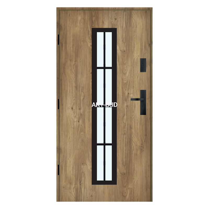 LOFT to seria drzwi z dwustronnymi ramkami lub aplikacjami w kolorze czarnym, które zostały naklejone na skrzydło drzwiowe. Pakiet szybowy tworzą trzy szyby połączone ciepłą, czarną ramką. Na szybie środkowej pakietu znajdują się malowane czarne szprosy.