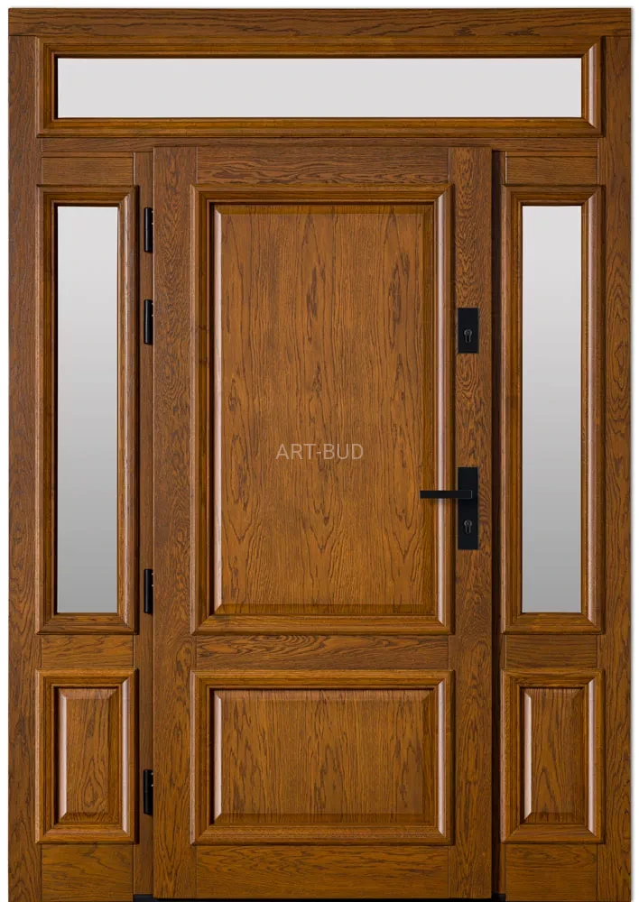 Drzwi zewnętrzne drewniane A10 ramiakowe z listewką ozdobną p.p. + dostawki boczne fix + naświetle Dallas
