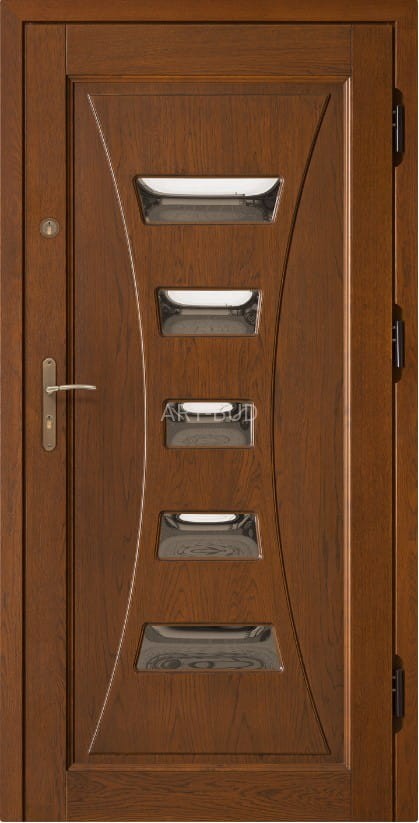 Najwyższej jakości zewnętrzne drzwi drewniane dębowe grubości 75 mm, ocieplone wewnętrzną warstwą pianki poliuretanowej. Oferowane w komplecie z drewnianą ościeżnicą z progiem aluminiowym i szeregiem akcesoriów w standardzie. Opcjonalnie, drzwi te są również oferowane w wersji energooszczędnej o grubości 100 mm, gdzie współczynnik przenikalności cieplnej wynosi zaledwie U-0,49.