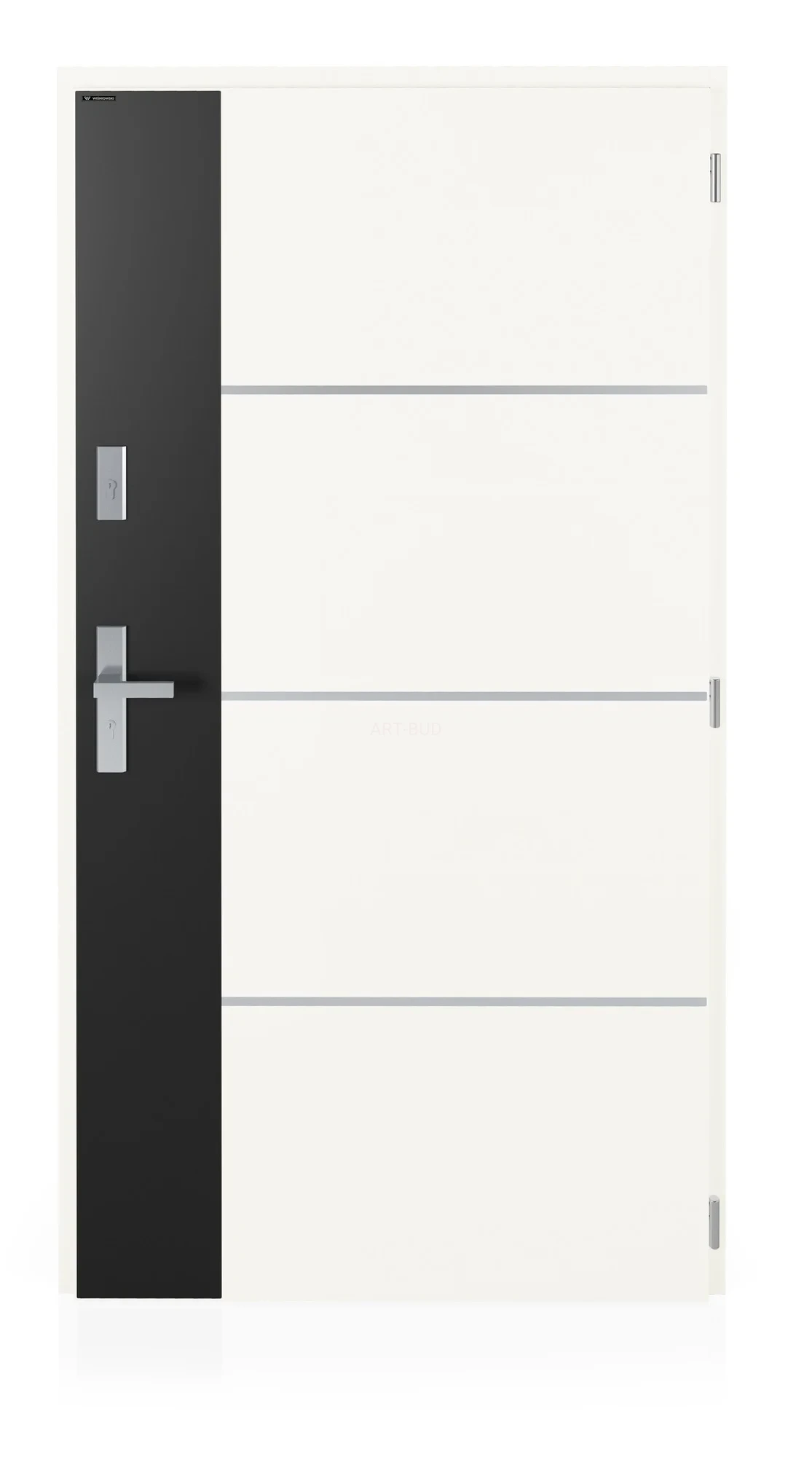 Aplikacje ozdobne w kolorze Inox ( wzdłuż klamki szeroka aplikacja czarna)