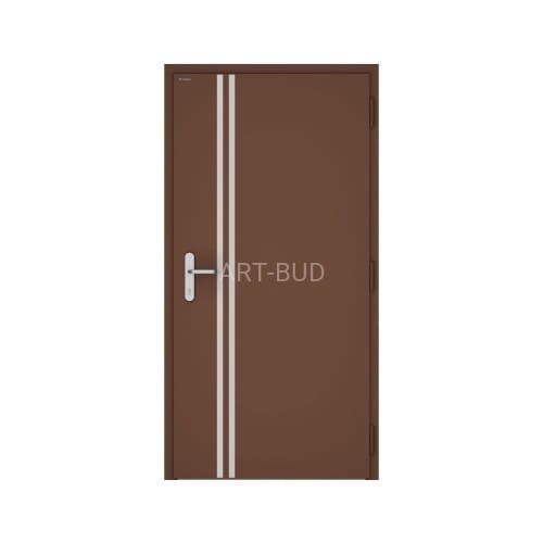 Drzwi zewnętrzne NOVA Wiśniowski wzór 011 z aplikacją jednostronną ze stali nierdzewnej - 2 pionowe paski 30 mm od strony klamki/uchwytu.