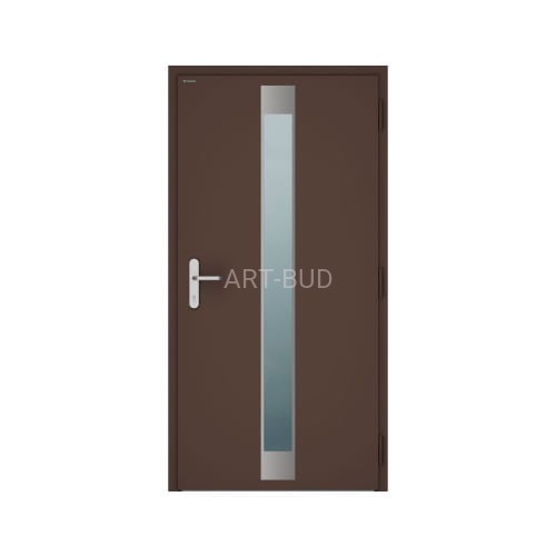 Drzwi zewnętrzne NOVA jednoskrzydłowe składają się z ościeżnicy wykonanej z kształtowników aluminiowych trzykomorowych, z przegrodą termiczną o głębokości 77 [mm] oraz skrzydła z grubą przylgą o grubości 78 [mm] wykonanego z blachy stalowej o grubości 0,75 [mm] i wypełnienia pianką PU.