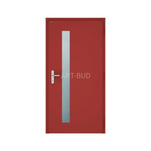 Drzwi zewnętrzne NOVA jednoskrzydłowe składają się z ościeżnicy wykonanej z kształtowników aluminiowych trzykomorowych, z przegrodą termiczną o głębokości 77 [mm] oraz skrzydła z grubą przylgą o grubości 78 [mm] wykonanego z blachy stalowej o grubości 0,75 [mm] i wypełnienia pianką PU.
