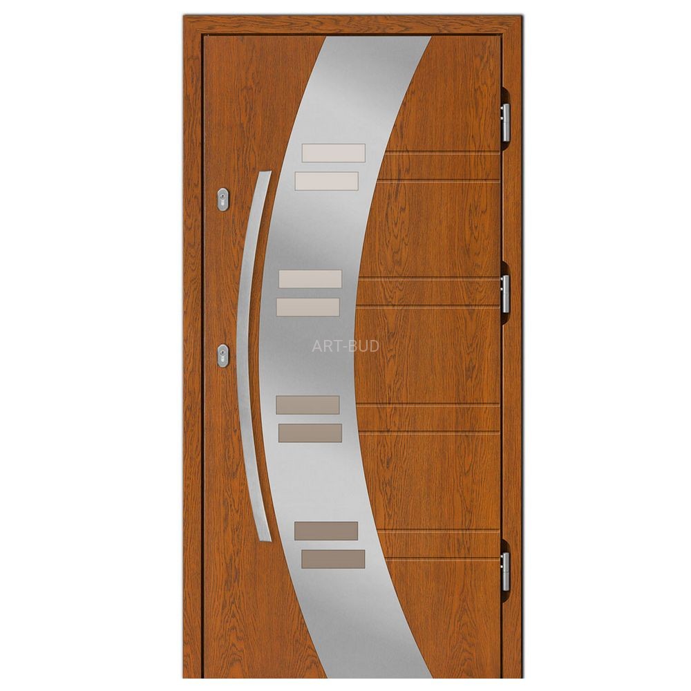 Grubość 75 mm, warstwa izolacyjna i pakiet 3-szybowy zapewniają współczynnik przenikalności cieplnej u-0.80 właściwym dla standardu tzw. drzwi pasywnych.