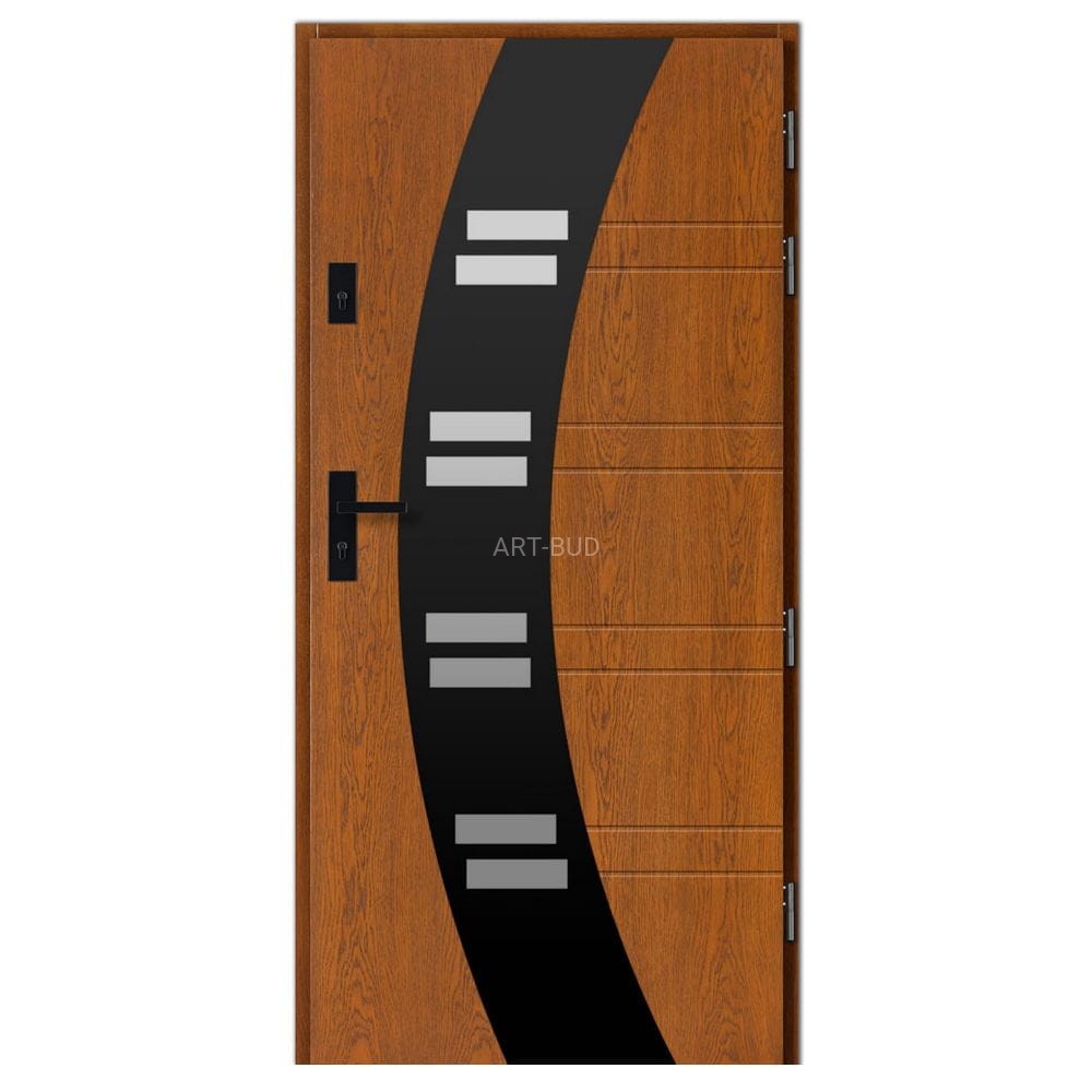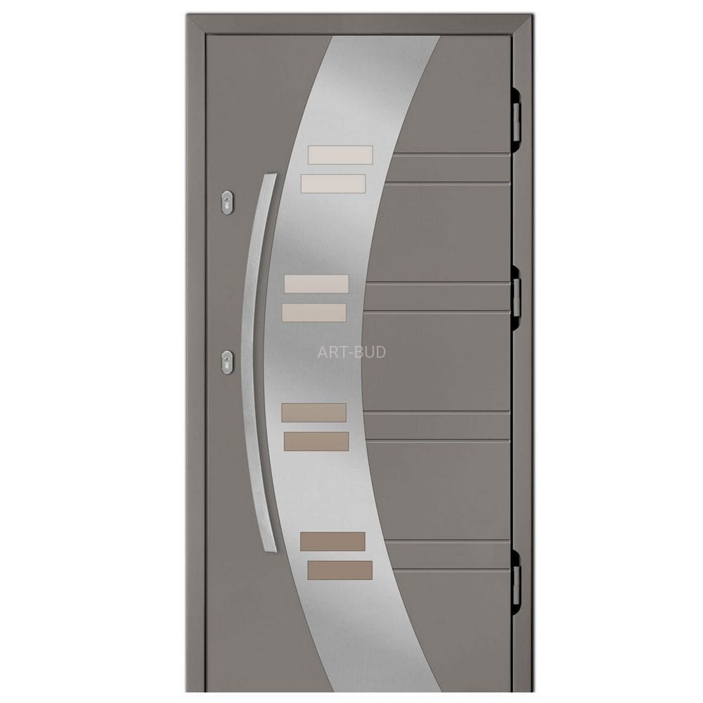 Drzwi zewnętrzne płycinowe typ Inox/czarna szyba gr. 75mm wsp.0.80 W 015 Dallas