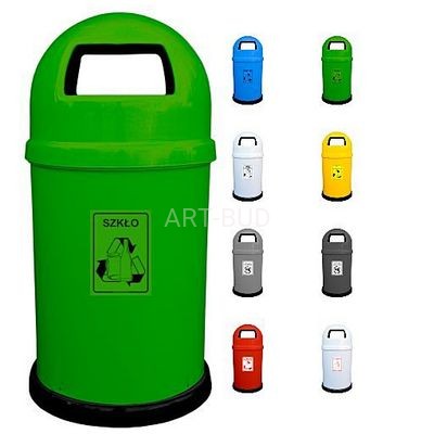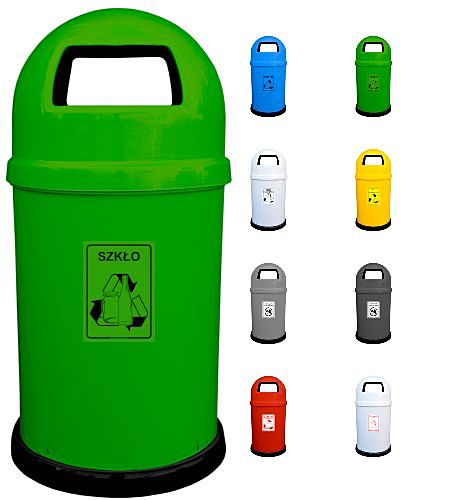 Kosz HIPO z laminatów poliestrowych wzmocnionych włóknem szklanym i wykończony gładkim żelkotem, to model znany i popularny wszędzie tam, gdzie stykamy się z segregacją odpadów śmieciowych. Kosz oferowany jest w 7 wersjach kolorystycznych, oraz z szeregiem standardowych, widocznych nalepek stosownie do przeznaczenia i rodzaju odpadów. Kopuła tego kosza w której znajdują się dwa boczne otwory wrzutowe, stanowi też zadaszenie w dużej mierze zabezpieczające wnętrze przed opadami atmosferycznymi, a przede wszystkim przed odpadami o zbyt dużych gabarytach.