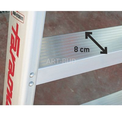 -Szerokie,aluminiowe i profilowane stopnie o głębokości 80mm, gwarantują bezpieczne wchodzenie.-