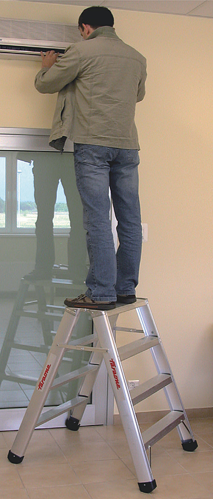 -Aluminiowy stołek z możliwością wchodzenia z obu stron.