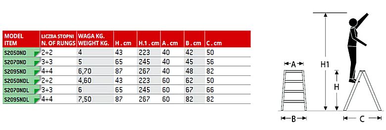 Dwustronna drabina stołek magazynowy z szerokimi stopniami ND- NDL Faraone