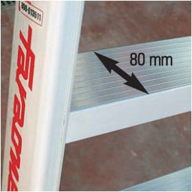 - Głębokie na 80 mm aluminiowe stopnie gwarantują bezpieczne wchodzenie.