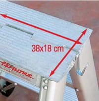 Wysokość robocza od 260 do 400 cm. Szerokość stopni wynosi 8 cm, są one montowane w stylu lotniczym, bez spawania. Podest z aluminiowym zawiasem o wymiarach 38 x 18 cm.