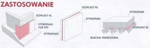 Masa IZOPLAST KL przeznaczona jest do klejenia papy do styropianu, styropianu do styropianu, styropianu do betonu, drewna, płyt gipsowych, płyt wiórowych, wełny mineralnej.
