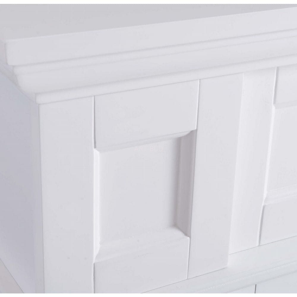 Materiał obudowy kominka – MDF – jest w stanie wytrzymać nie tylko znaczne zmiany temperatury i wysoką wilgotność, ale jest również bardziej odporny na obciążenia niż analogi wykonane z litego drewna. Obudowa wykończona kilkoma warstwami farby i lakieru.