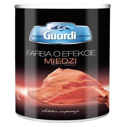 Farba o Efekcie Miedzi Francesco Guardi to produkt polecany głównie do dekorowania wnętrz o charakterze industrialnym lub modernistycznym. Dzięki zastosowaniu odpowiednich narzędzi sprawdzi się ona także przy wnętrzach w stylu industrialnym. Farba ta akcentuje w wyraźny sposób malowane powierzchnie, posiada mnogość efektów, właściwości dekoracyjne na wysokim poziomie, a także możliwość aplikacji za pomocą różnych narzędzi malarskich.