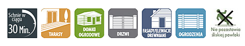 Ważne: aby zapewnić optymalną impregnację należy upewnić się, że drewno jest suche (minimalnie 3 dni słonecznej pogody przed zastosowaniem oraz brak opadów w ciągu 24 godzin po nałożeniu 2. warstwy). Nie nanosić w pełnym słońcu.