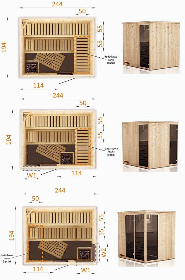 Przedstawiona cena podstawowa dotyczy sauny 2520WO (pełne ściany).