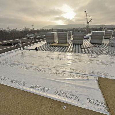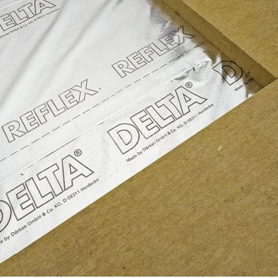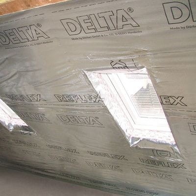 DELTA®-REFLEX Energooszczędna wiatro- i paroizolacja składająca się z materiału 4-warstwowego do wszystkich rodzajów dachu. DELTA®-REFLEX posiada równoważną dyfuzyjnie grubość warstwy powietrza wynoszącą około 150 m. Ta wysoka rezerwa bezpieczeństwa wyłącza na długi czas procesy dyfuzji na szkodę izolacji cieplnej i konstrukcji dachu. Zaletami są: nawet o 10% wyższa ochrona cieplna, nawet o 99% mniejsze obciążenie promieniami elektromagnetycznymi dla człowieka, 50% odbicia