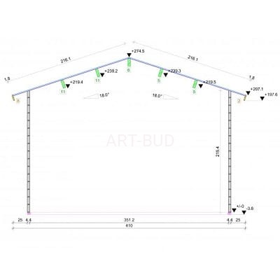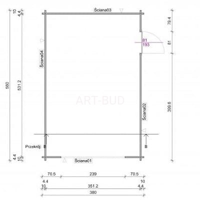 | Wymiary garażu (cm x cm):380x560 Powierzchnia podłogi (m2):18.70 Powierzchnia dachu (m2):24.40 Grubość balika (mm):44.00 Wysokość ściany (cm):216.00 Wysokość szczytu (cm):275.00 |