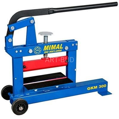Sztandarowy produkt firmy MIMAL, efekt prawie trzydziestu lat doświadczenia tej renomowanej polskiej firmy, produkującej sprzęt brukarski głównie na rynek krajowy. Zwarta i sztywna konstrukcja oraz niewielkie gabaryty i waga, pozwalają na łatwe operowanie gilotyną na placu budowy. Gilotyna do cięcia kostki brukowej wyposażona jest w dwa kółka, które pozwalają na łatwe przemieszczanie urządzenia, bez konieczności jej podnoszenia. Zastosowano w niej wymienne noże z hartowanej na wskroś stali, co pozwala w