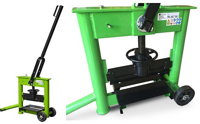 Solidna przecinarka do łupania kostki brukowej, krawężników, kamieni kompozytowych itp. Elastyczna listwa nożowa z wymiennymi złączami - wyposażona w 4 krawędzie tnące. Wyposażona w sprężynowe nakładki. Regulacja wysokości luki odbywa się za pomocą trzpienia gwintowanego. Dwa koła i uchwyt pozwalają na wygodne przemieszczanie urządzenia.