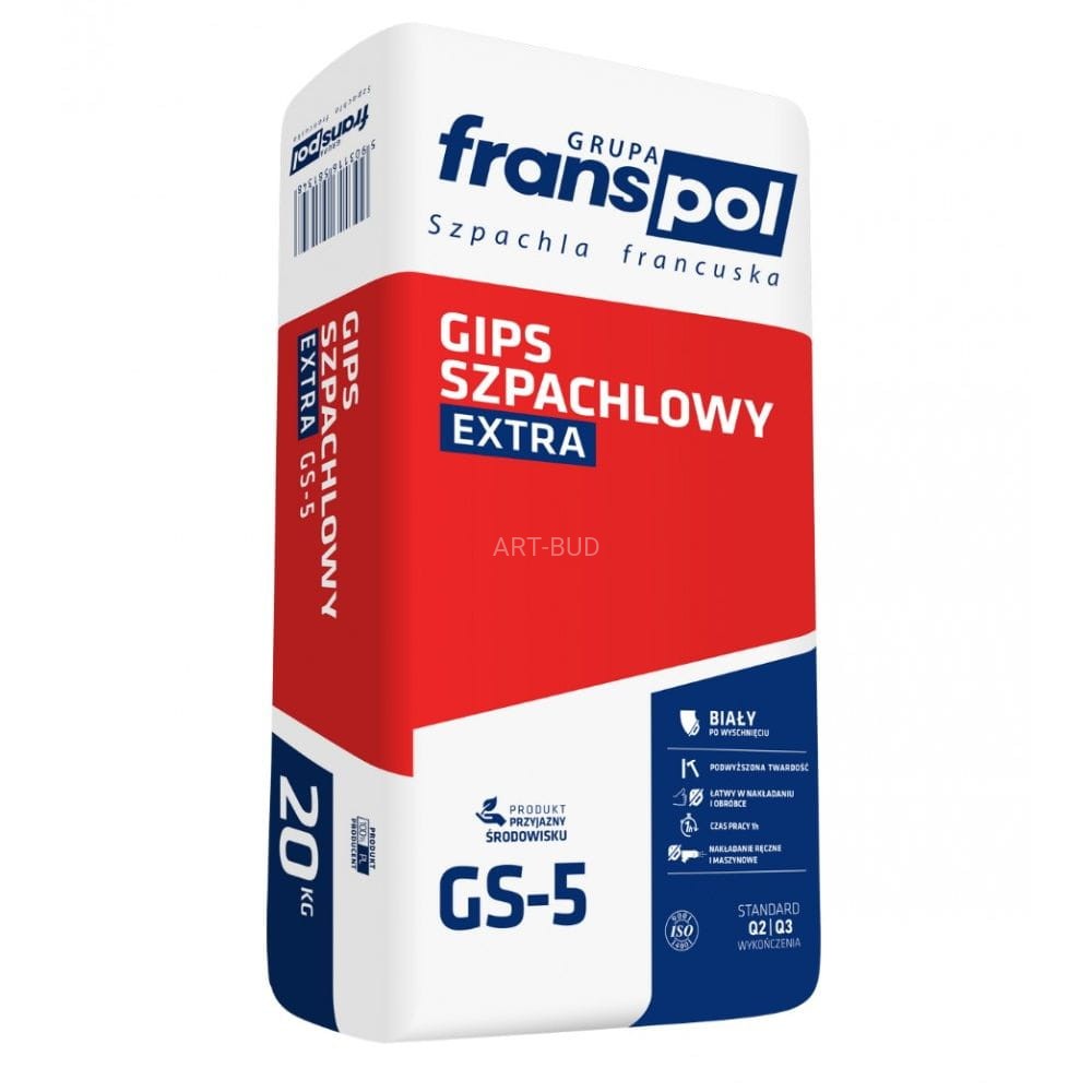 Gips Szpachlowy Extra GS-5 to wysokiej jakości wolnowiążący materiał wykończeniowy o dużej przyczepności doGips Szpachlowy Extra GS-5 20 kg Franspol podłoża. Jest plastyczny podczas nakładania i twardszy od gładzi szpachlowej. Przeznaczony głównie do prac remontowych, wykończeniowych i dekoracyjnych w budownictwie, a w szczególności pozwala doprowadzić ściany i sufity do idealnej gładkości przed malowaniem. Wykorzystywany do szpachlowania na podłożach betonowych, tynkach cementowo-wapiennych i cementowych wewnątrz pomieszczeń.