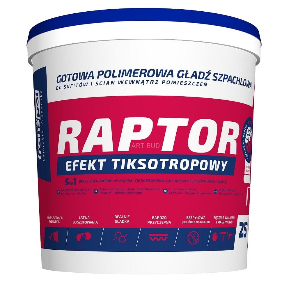 Gotowa Gładź Szpachlowa Raptor to najwyższej jakości, gotowa do użycia Gładź przeznaczona głównie do prac
