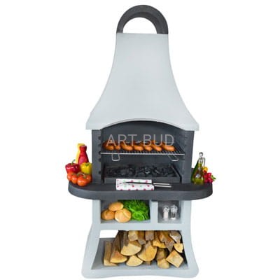 Grill Apollo z betonu na bazie najwyższej jakości kruszywa drogowego, cementu klasy 42,5R z dodatkiem superplastyfikatora. Całość cechuje doskonała wytrzymałość i odporność na wszelkie warunki atmosferyczne.