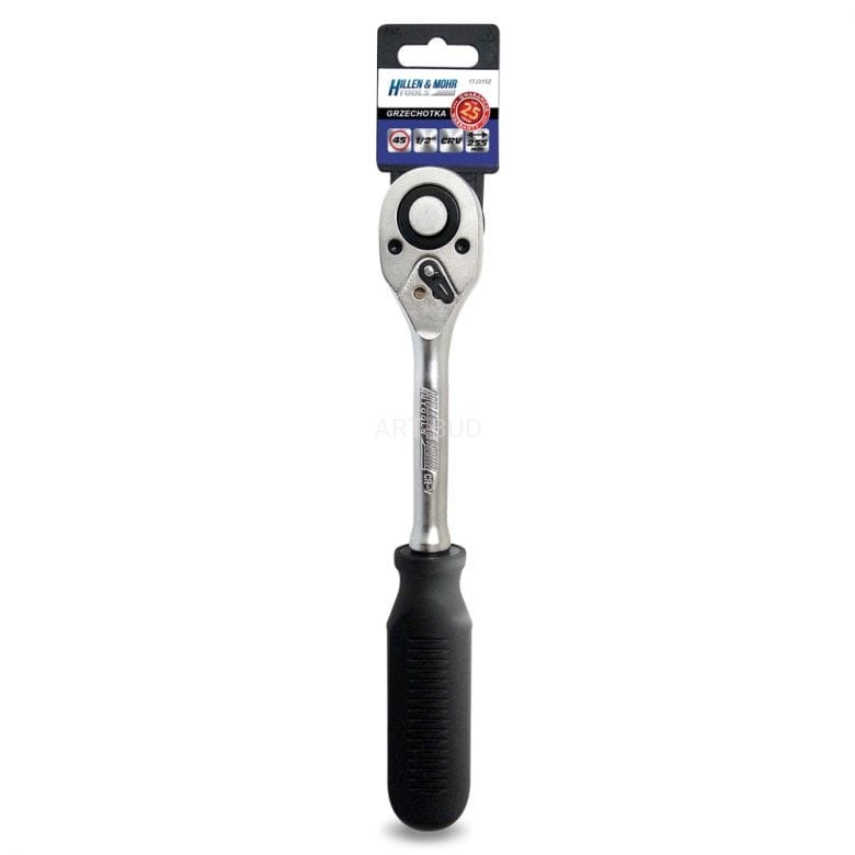 Grzechotka Hillen&Mohr prosta, wykonana jest z wytrzymałej stali chromowo - wanadowej. Rozmiar napędu kwadratowego 1/2''. W grzechotce zastosowano mechanizm z 45 zębami co przekłada się na 8° skok. Przełącznik lewo - prawo zapewnia jeszcze większy komfort pracy zarówno przy odkręcaniu jak i dokręcaniu.
