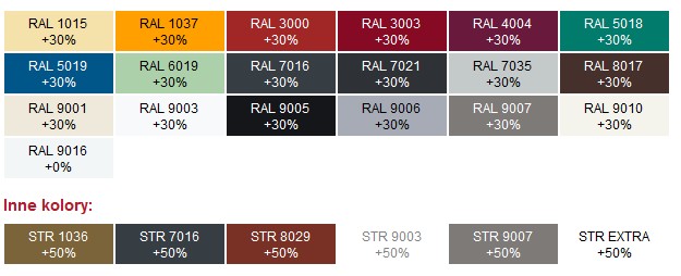 Cena podstawowa dotyczy koloru 9016. Poniżej przedstawiono cenę innych kolorów grzejnika. Prosimy o wskazanie w formularzu zamówienia.