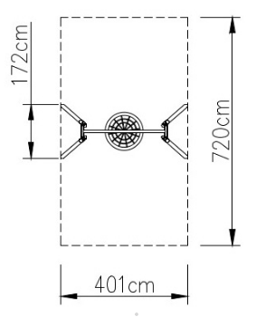 Wys.225 cm, Szer. 225 cm, Dł.195 cm, siedzisko: płaskie lub kubełkowe z łańcuszkiem, strefa bezpieczeństwa: 225 × 700 cm