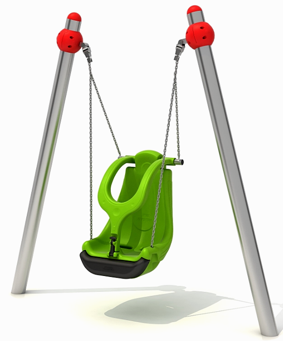 Huśtawka przeznaczona dla jednego dziecka w wieku 3-14 lat. Konstrukcja wykonana ze stali nierdzewnej, siedzisko kubełkowe LLDPE z odbojnikiem gumowym. Słupy o przekroju okrągłym Ø114*3,6 mm, łańcuchy ze stali nierdzewnej. Kolorystyka konstrukcji huśtawki: srebrny, zielony. Elementy wykończeniowe placu mogą różnić się od przedstawionych na wizualizacji.