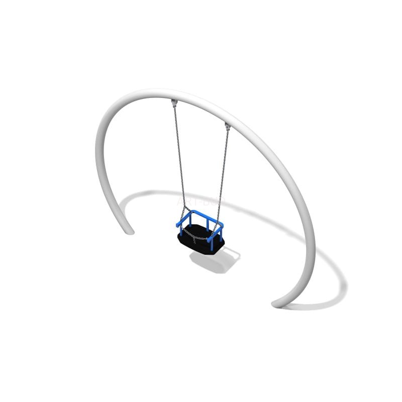 Huśtawka wahadłowa z siedziskiem typu deseczka oraz zaokrągloną ramą. Konstrukcja wykonana ze stali ocynkowanej, malowanej proszkowo. Kolor konstrukcji – grafitowy i szary, a kolor siedziska – czarny.