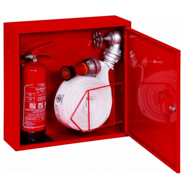 Hydrant wewnętrzny DN52 z miejscem na gaśnicę obok, z wężem płaskoskładanym DN52 15 lub 20 metrów w koszu lub na bębnie, w szafce zawieszanej lub wnękowej, z zaworem DN52 oraz prądownicą mosiężną płynnie regulowaną między prądem zwartym a rozproszonym. Istnieje możliwość dopasowania produktu do potrzeb klienta.